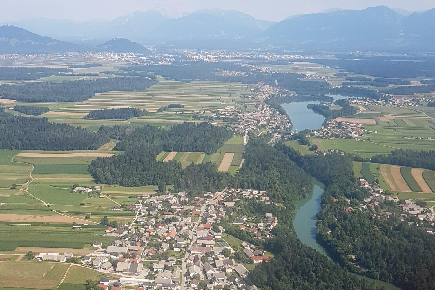 After takeoff from airport Ljubljana, we fly over the beautiful Lake Zbilje, which leads us to the confluence of the river Sora and the river Sava, where the town and center of the Medvode municipality were created. From the air, we can see mighty castles, numerous churches, and chapels, which represent a large part of history and their cultural heritage.